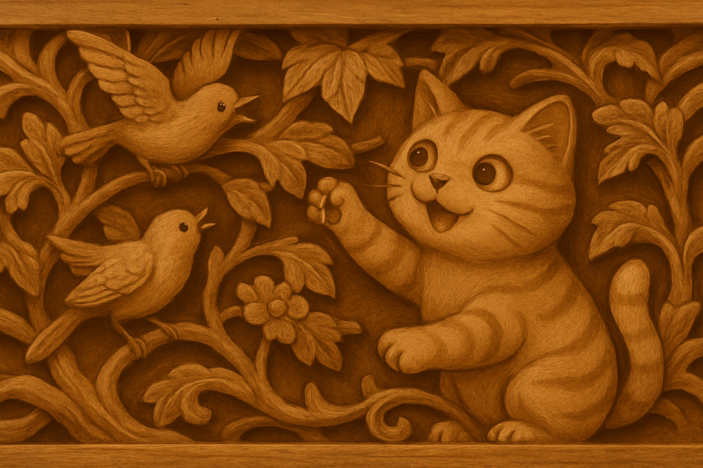 - Among Japan’s many wood carving regions, Inami sculpture stands out for its three-dimensional, dynamic carving technique. Craftsmen use over 200 chisels and carving knives to shape camphor, zelkova, paulownia, and other types of wood. One of the highest forms of this craft is sukashi-deep carving, where the design is carved from both sides of a transom, creating intricate depth and detail. In traditional Japanese homes, the ranma (transom) serves as a showcase of the household’s prestige, and an Inami carving is considered a dream feature—something many Japanese hope to one day install in their own homes.