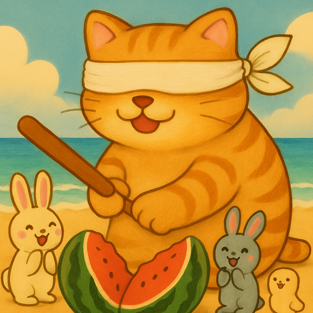 While watermelon splitting, or ‘suikawari,’ may seem like a simple and silly game・・・・?💻 Created with AI / AIで作成