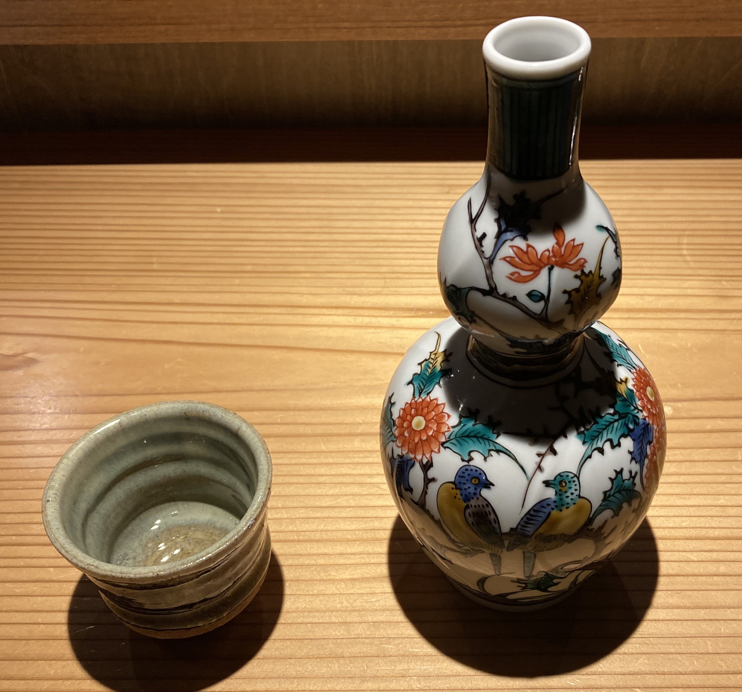 2. Janome (Snake’s Eye): Do you see the blue concentric circles at the bottom of the white porcelain cup? This is called Janome (Snake’s Eye). It’s used by professionals to check the sake’s clarity and color.