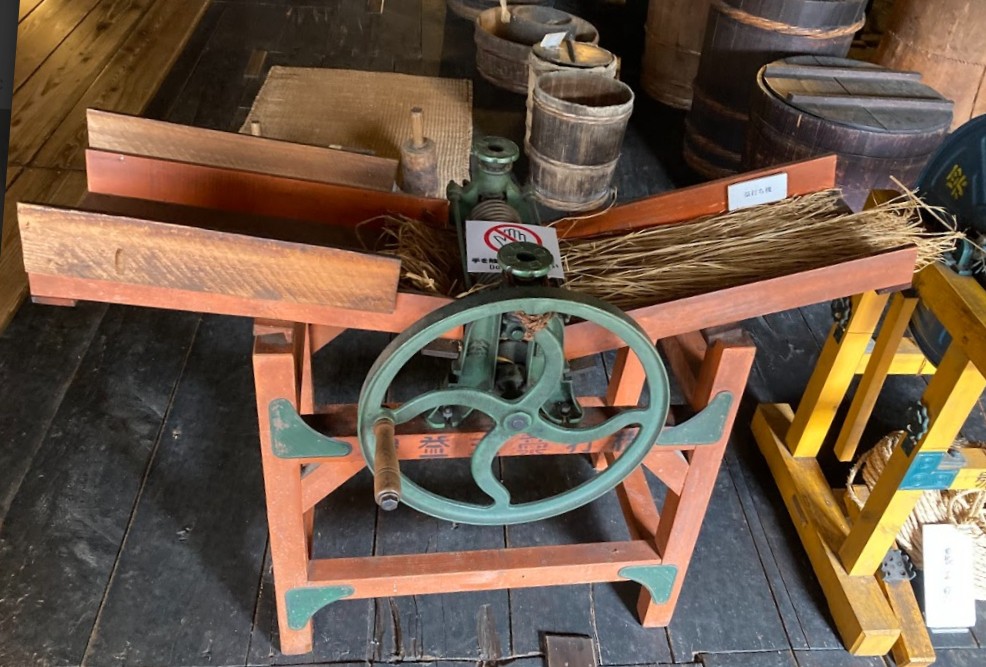 👇事例:クランクを回すことで内部の歯やローラーが動き、藁を叩く仕組みです。