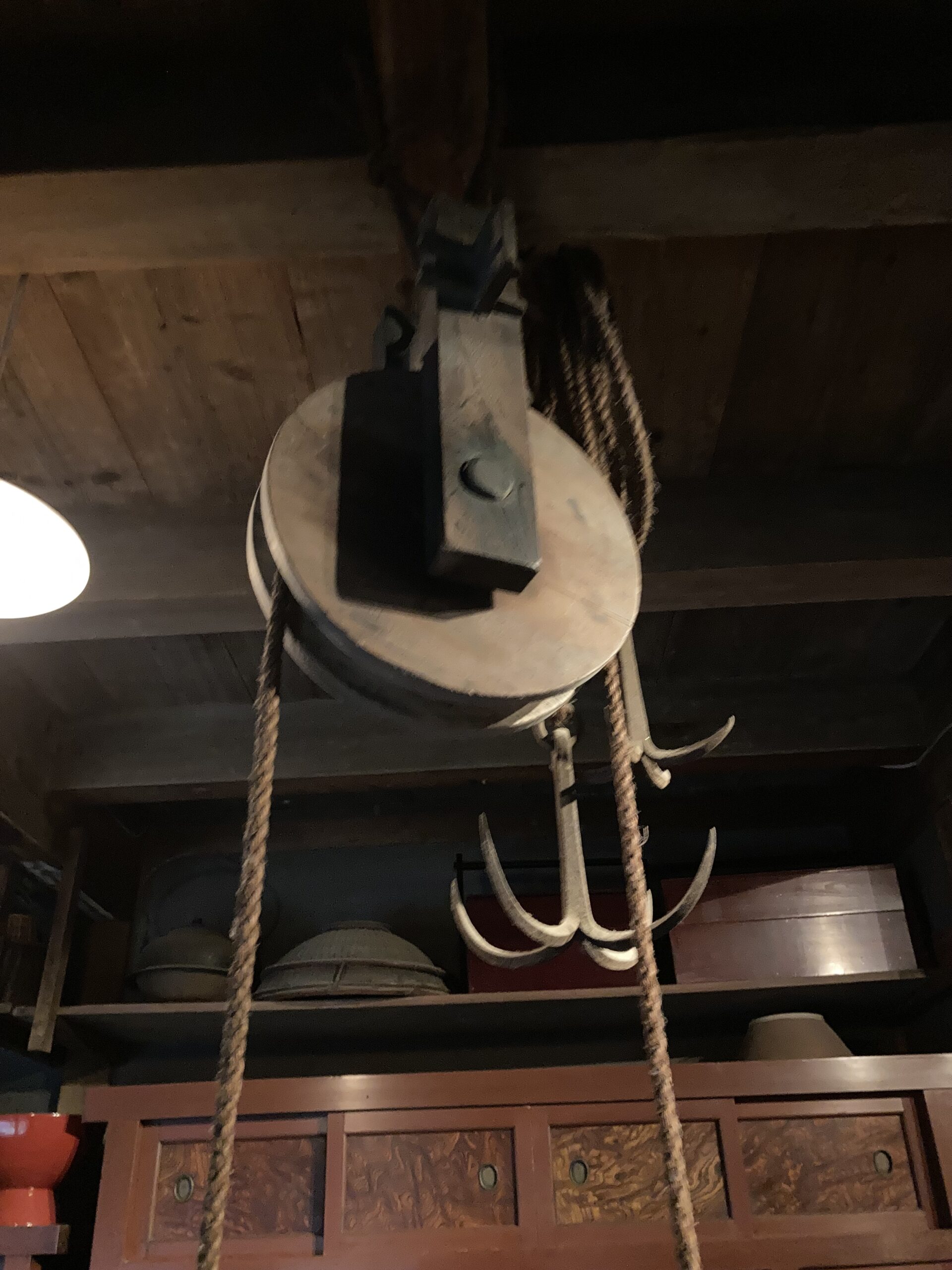 👇事例:天井から吊るされた ロープと滑車の仕組み がわかります。