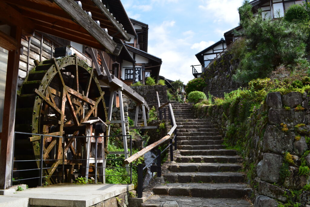 👇事例:水車が水の流れを利用する典型例です。