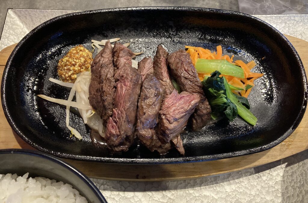 - ジュージューと焼けるステーキを見ていると口が熱くなってきます。