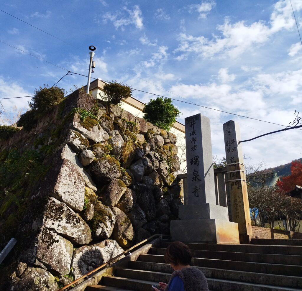 - 瑞泉寺には独特の歴史があります。かつては地域住民を守る軍事要塞としての役割を担っていました。それは、他の寺院ではめったに見られない特徴的な石垣にはっきりと表れています。ほとんどの城郭の専門的に築かれた石垣とは異なり、これらの石垣には手作り感があり、どこか素朴な趣があります。石の間から植物が生い茂るやや手つかずの風景は、当時の住民たちの生き残りをかけた必死の闘いを示しており、多くの訪問者の顔も優しい笑顔になります。