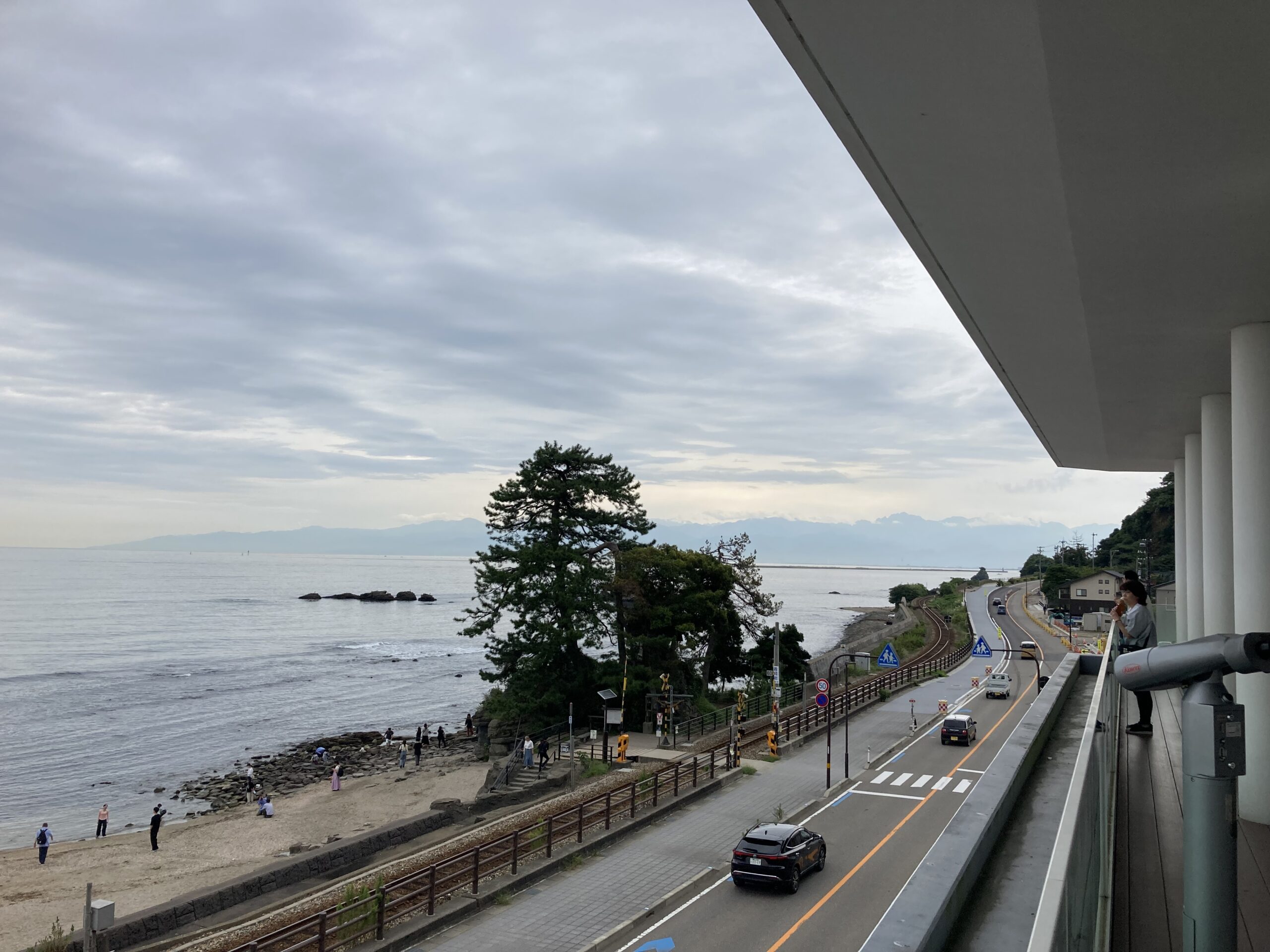 - 雨晴海岸のそばにある道の駅は、休憩所兼ギャラリーとして機能するユニークな建物で、数々の建築デザイン賞を受賞しています。この建物は、海岸線とすぐそばの丘陵に挟まれた、奥行きがわずか10メートル未満という、極端に細長い敷地に建っています。まるで白いクルーズ船が浮かんでいるかのような、長さ200メートルに近いこの建物は、目の前に広がる穏やかな海を眺めるのに最適な船の役割を果たしています。