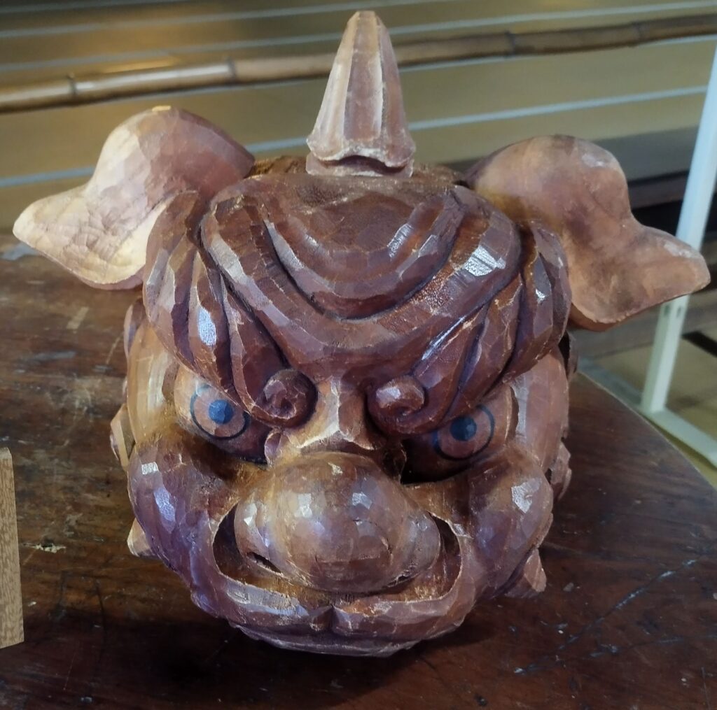 “Lion heads are a common motif in Inami carving.”