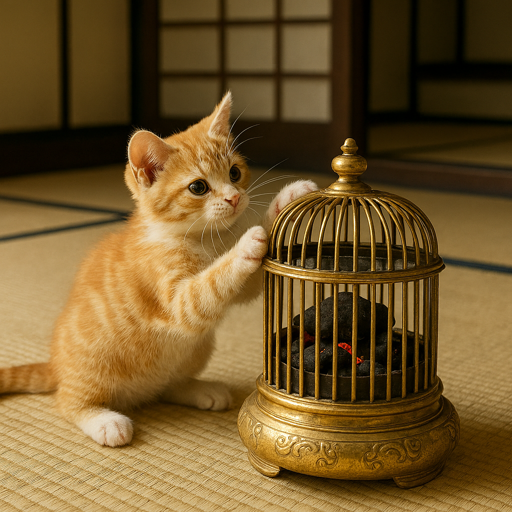 - It looks like a birdcage from here, but it’s actually a charcoal brazier, called ‘Hibachi,’ a traditional Japanese heating device that uses charcoal fire.